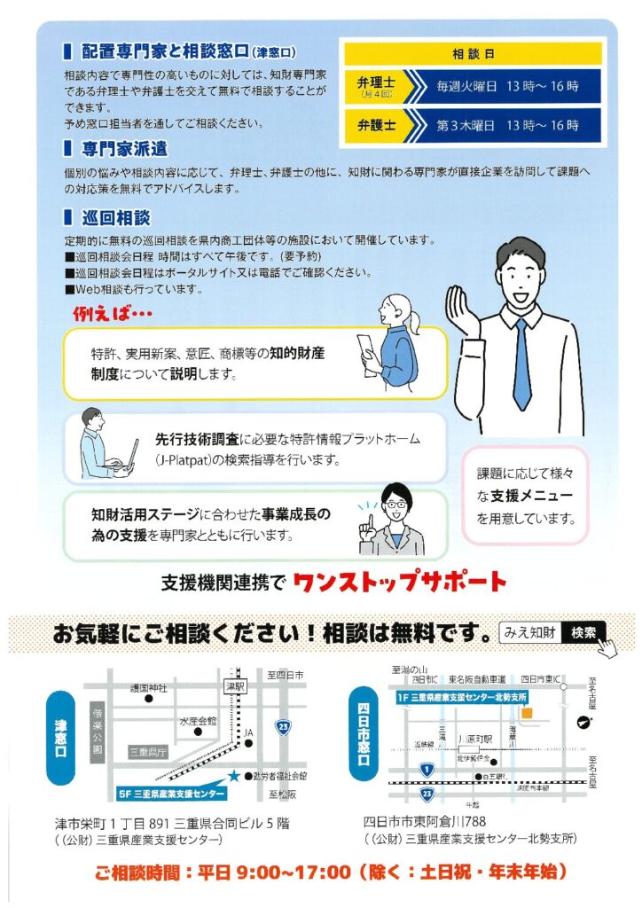 三重県知財総合支援窓口(相談無料)のご案内